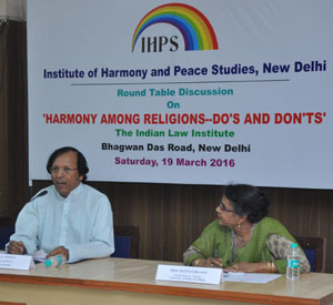Institute of Harmony and Peace Studies, New Delhi, organized a Round Table Discussion on 'Harmony among Religions – Do's and Don'ts' at The Indian Law Institute, New Delhi, on 19 March 2016. Dr M. D. Thomas, Chairman and Director of the Institute, chaired the session and he moderated it..