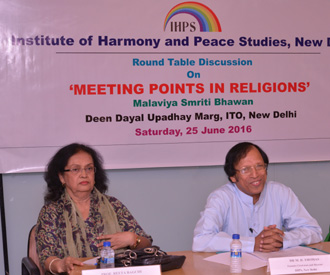 Institute of Harmony and Peace Studies, New Delhi, organized a Round Table Discussion on 'Meeting Points in Religions' at Malaviya Smriti Bhawan, New Delhi, on 24 June 2016. Dr M. D. Thomas, Founder Chairman and Director of the Institute, chaired
